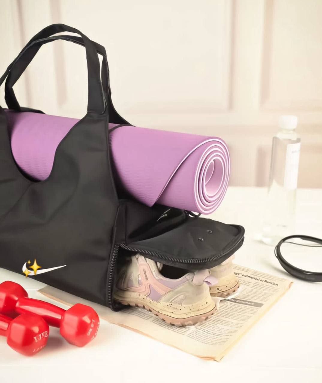 ساک ورزشی /یوگا ۲ برند Alo چاپ کاتری جای کفش مجزا جای مت جای لوازم و شیکر جنس ریبس کجراه تک رنگ ابعاد 45*25
