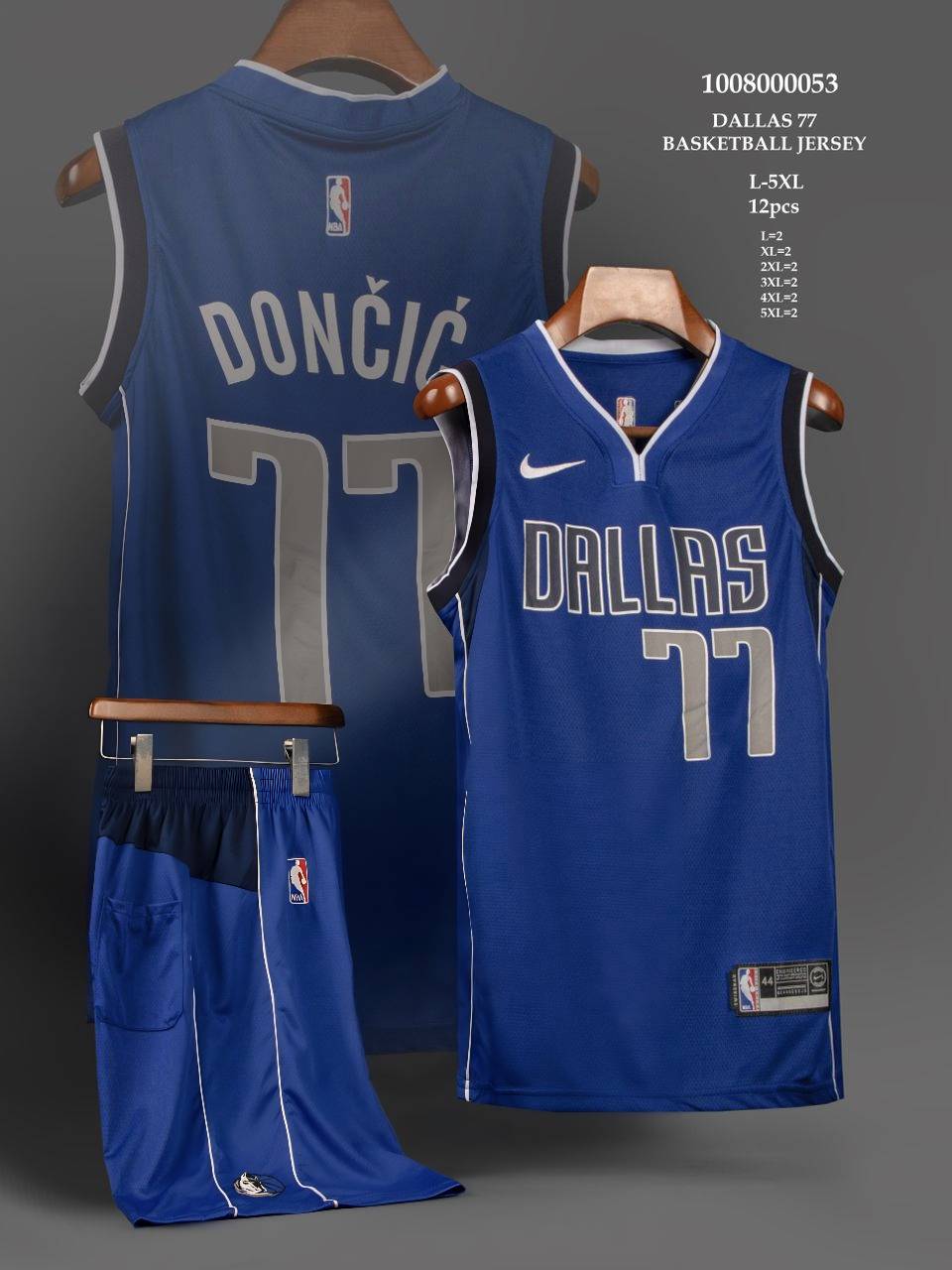 رکابی لباس با شورت بسکتبال دالاس رنگ آبی نوار سرمه ای سفید ست بسکتبالdallas با شماره 77 وارداتی تایلندی