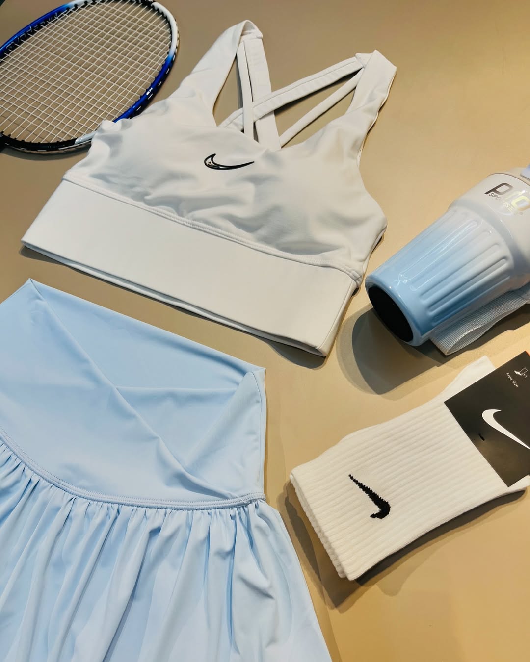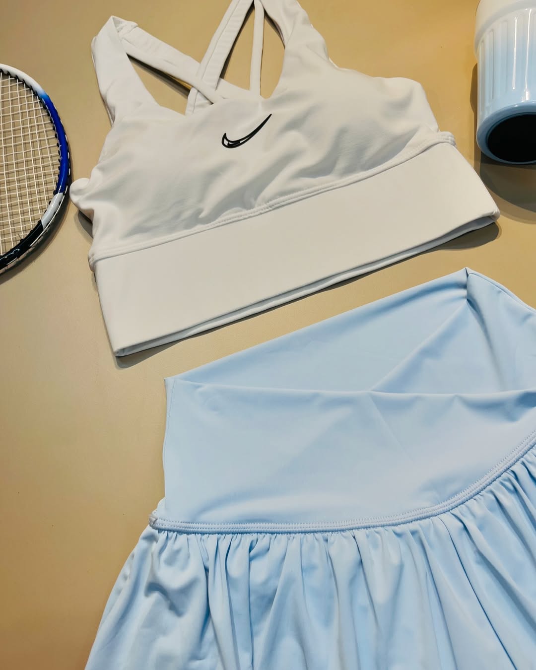 ست سفید آبی جذاب شرتک کشاله دار وارداتی کمرهفتی درگ سایزبندیS/M/L نیمتنه پشت ضربدری درگ سایزبندیM/L/XL